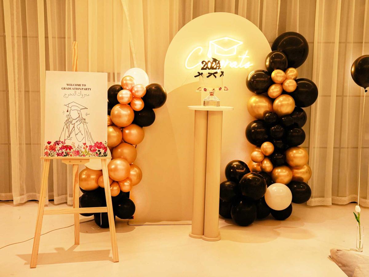- Grand Entrance: Make a statement with a stunning arch stand adorned with vibrant balloons, creating a picture-perfect entrance for your graduation celebration.